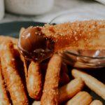 Așezam o hârtie de copt pe o tava și formam “churroșii” cu ajutorul posului.